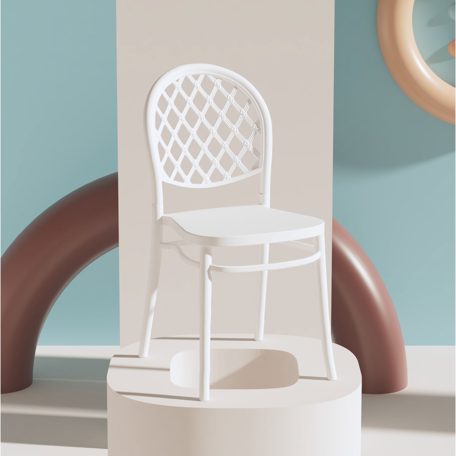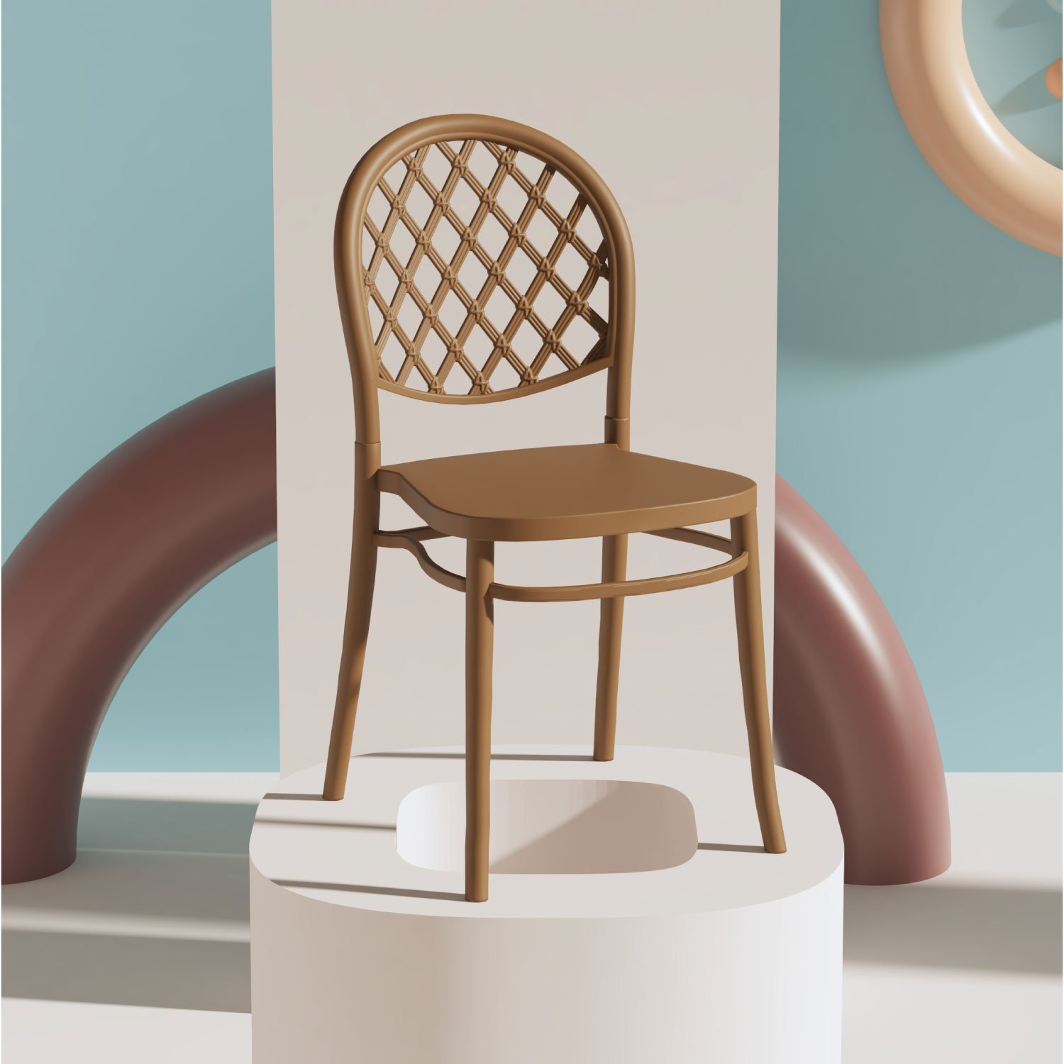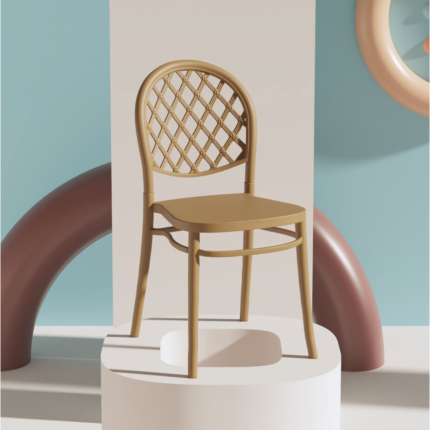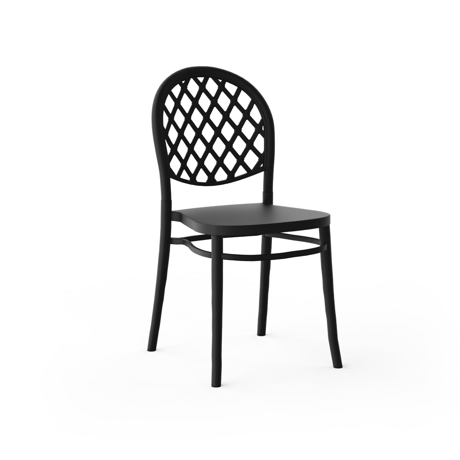 Ergonomically designed, stackable plastic chair with integrated armrests. The one-piece injection-molded frame offers enhanced durability with a textured matte surface resistant to daily wear. Materials: Seat Structure: UV-stabilized, colorfast, glass-fiber reinforced polypropylene. Feet: Fitted with anti-slip natural PVC caps for stability and floor protection.
