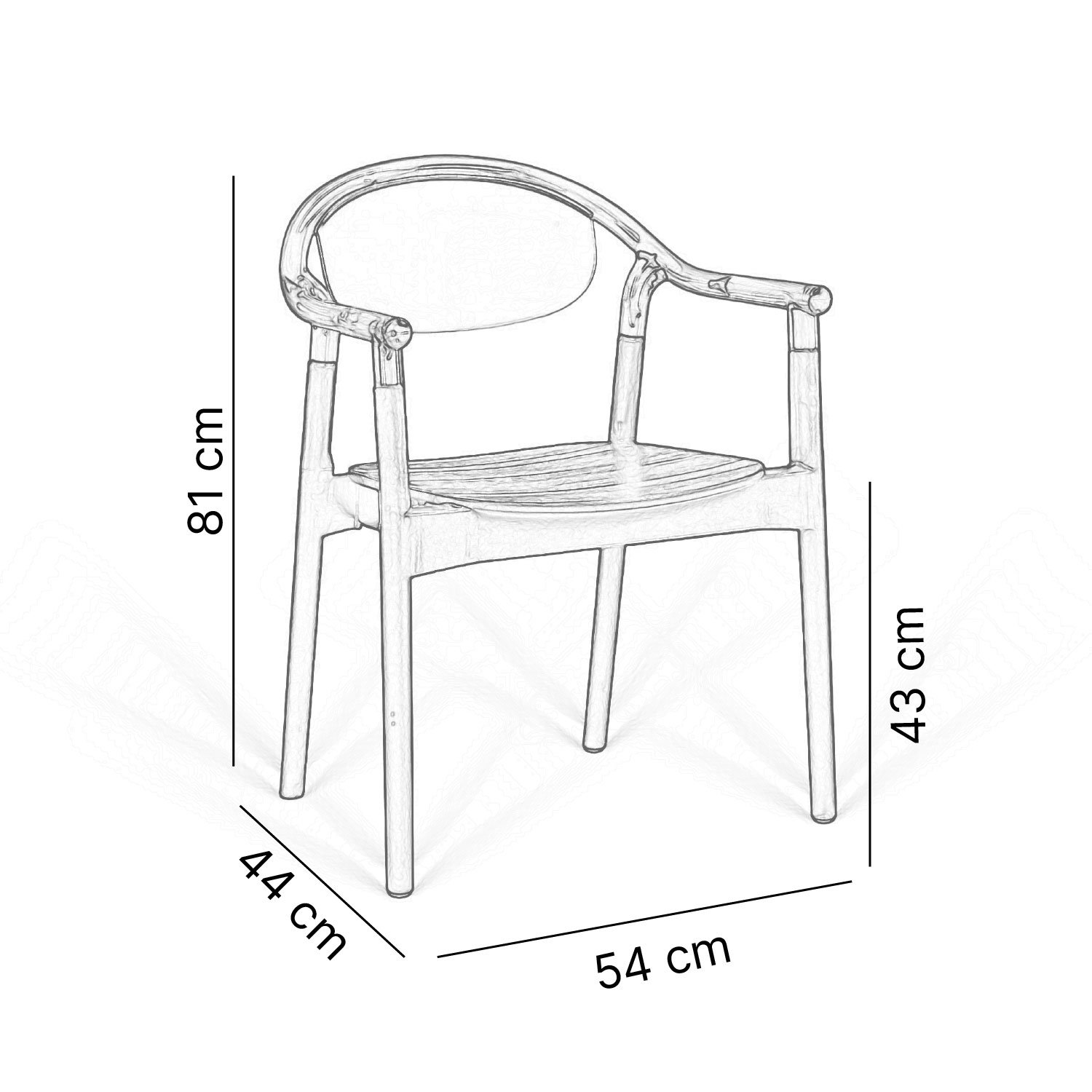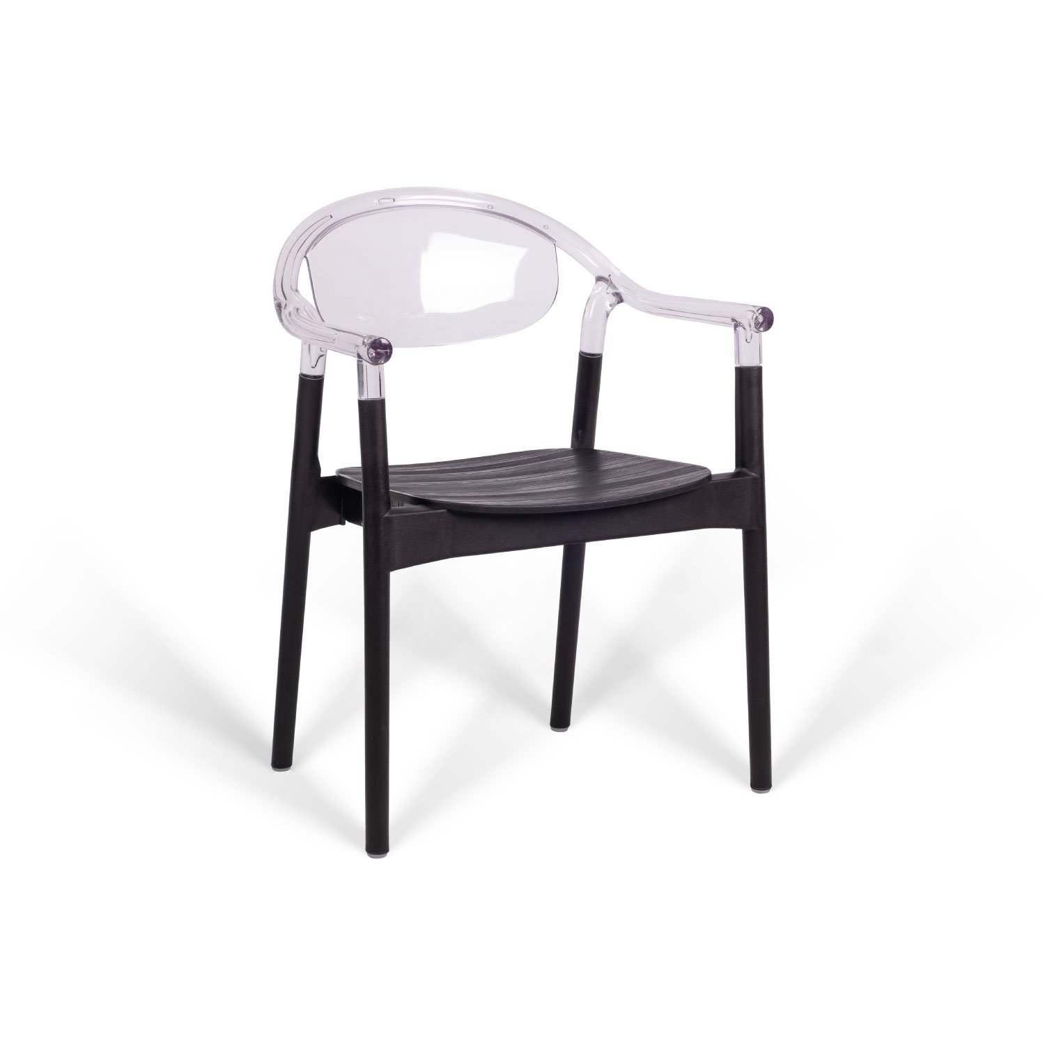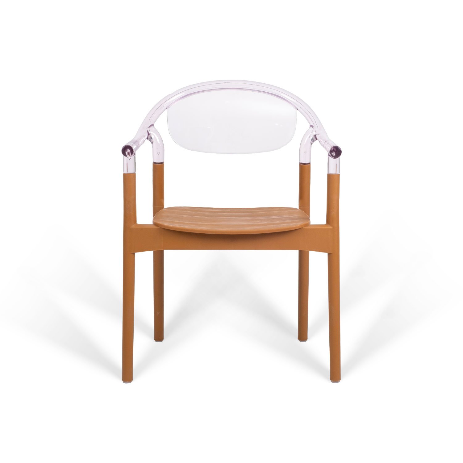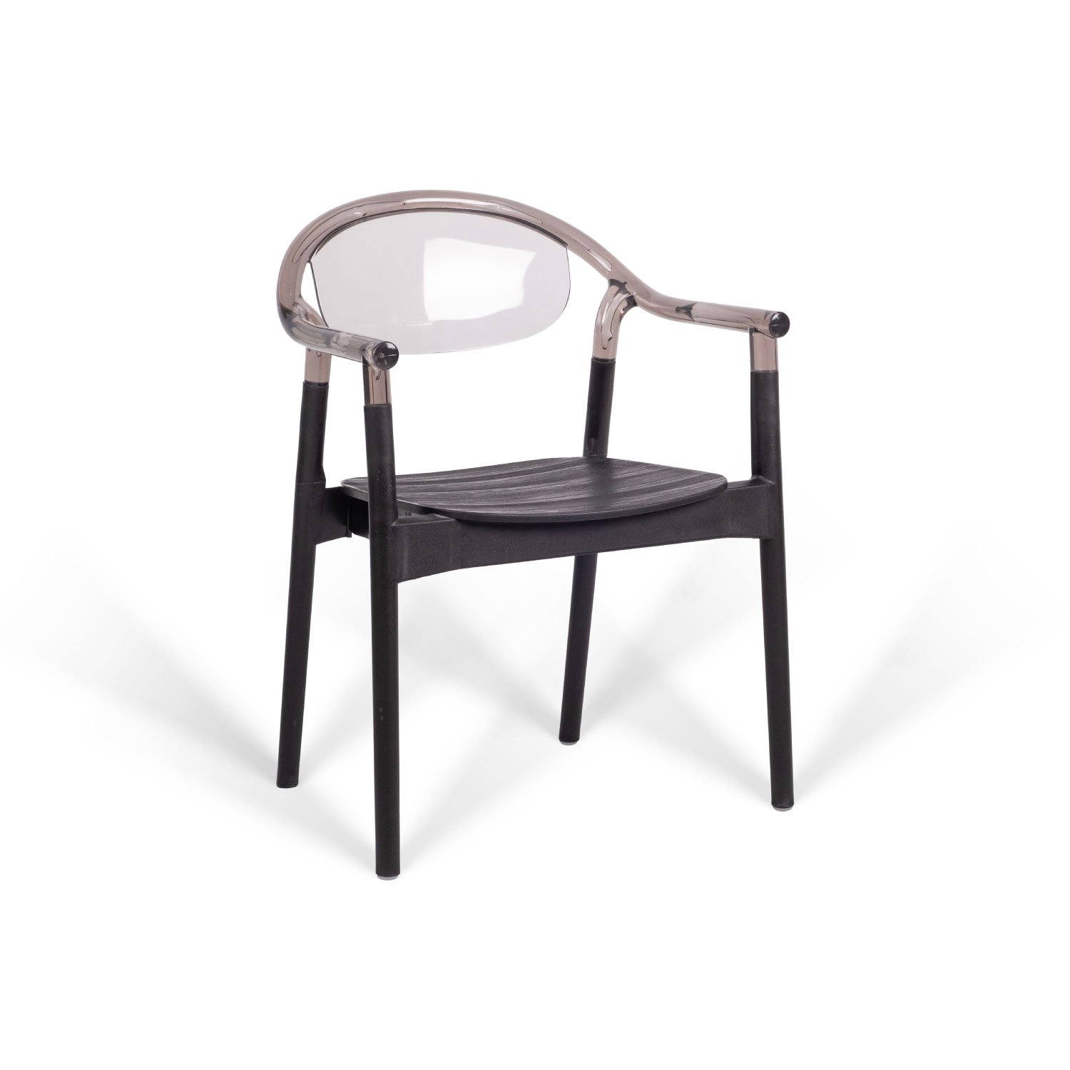 Ergonomically designed, stackable plastic chair with integrated armrests. The one-piece injection-molded frame offers enhanced durability with a textured matte surface resistant to daily wear. Materials: Seat Structure: UV-stabilized, colorfast, glass-fiber reinforced polypropylene. Feet: Fitted with anti-slip natural PVC caps for stability and floor protection.